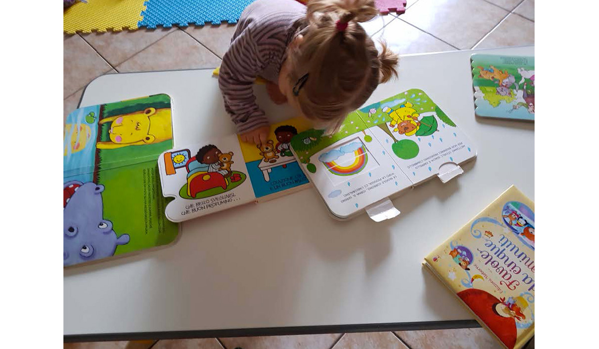 Per sottolineare l'importanza che riveste la narrazione le educatrici propongono libri con storie semplici e divertenti che sfogliano insieme ai piccoli ponendo attenzione alle foto, immagini di animali, persone ed oggetti della vita quotidiana. L'attività viene svolta nell'angolo morbido del nido ben definito ed accogliente dotato di giochi di stoffa e stimoli uditivi, tattili e visivi adatti anche ai bambini più piccoli.